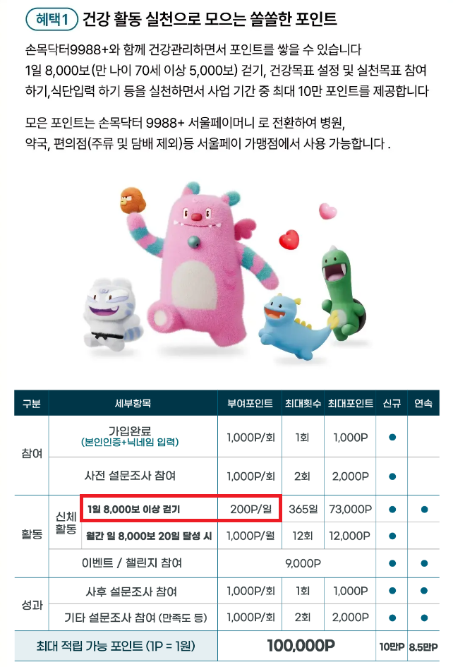 하루 8,000보를 걸으면, 200원을 지원해주는 어플입니다.